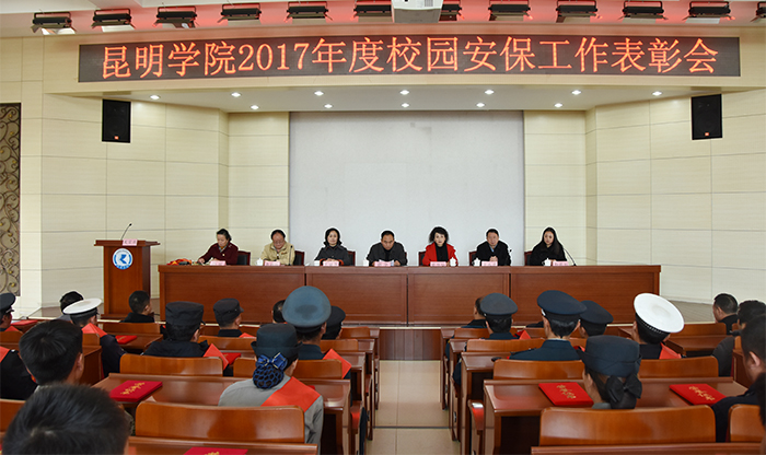 12月20日,我校在D区三楼报告厅召开beat365在线体育唯一正版2017年度校园安保工作表彰会,表彰在2017年度校园安保工作中涌现出来的优秀个人。党委委员、副校长郭华,机关党总支书记蔡华仙,学生处处长晁丽华,云南绅顿保安服务有限公司副总经理和莉虹出席表彰会,保卫干部、保安、学生治安服务队员共100余人参加表彰会,表彰会由保卫处处长李劲松主持。