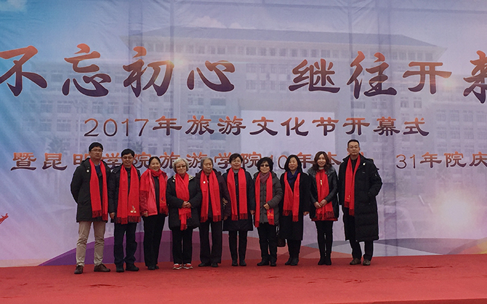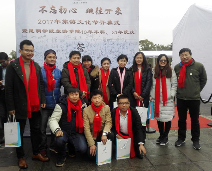 11月24日,旅游学院在我校聂耳广场举办了主题为“不忘初心、继往开来——2017旅游文化节暨beat365在线体育唯一正版旅游学院10年本科、31年院庆”的开幕庆典活动。 出席开幕式的有我校副校长熊晶,历届老领导,校企合作专场招聘会40余家代表,历届校友400余名、在校学子500余名共襄盛举。本次活动由2000级校友现任云南交通之声主播罗西主持。 开幕式上,熊晶副校长代表学校致辞,并向各位来宾介绍了beat365在线体育唯一正版近几年的发展和旅游学院的情况。院长田芙蓉代表旅游学院全体师生欢迎校友们回家并表达了成立校友会的愿望,她相信在校友们的支持下,旅游学院在未来的征程中会取得更大的发展。 1995级学生代表朱江代表95级的校友向学院赠送礼物,感恩母校的教育之情。2003级的毕业生班先海、雷翔等校友表演了花式调酒。校友情、师生情感动着每一位在场的嘉宾。