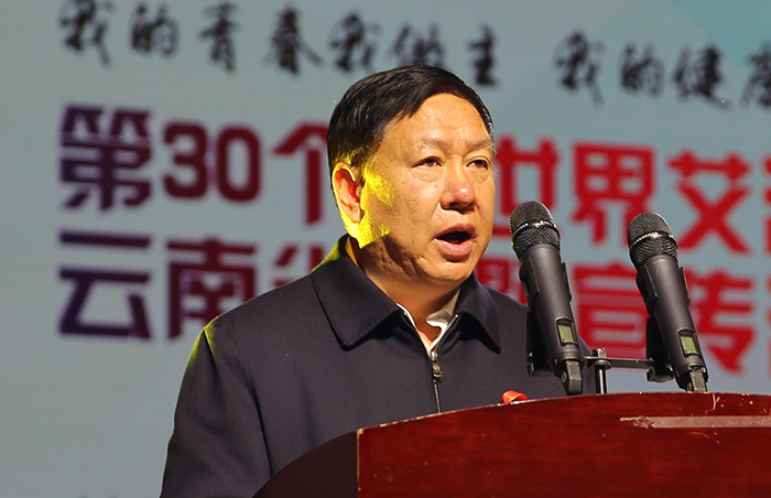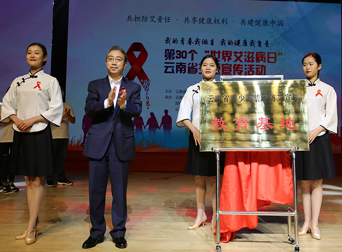 11月30日上午,由云南省防治艾滋病工作委员会主办、云南省防治艾滋病局、beat365在线体育唯一正版、云南省性病艾滋病防治协会承办的“我的青春我做主 我的健康我负责” 第30个“世界艾滋病日”云南省宣传活动启动仪式在我校学生会堂举行。 云南省人民政府副省长陈舜,省政府副秘书长赵瑞君,省卫生计生委党组书记王灿平,省教育厅副厅长赵德荣,省性病艾滋病防治协会会长陈觉民,昆明市政府副秘书长王亚芳,学校党委书记陈永明, 长黎素梅等领导出席了启动仪式。省防艾委、市防艾委成员单位相关负责同志,我省高校防艾教育基地学生代表,我省医务人员、志愿者、农民工代表与我校师生1300余人共同参加了本次活动。 学校党委书记陈永明代表承办方致辞。陈书记首先代表beat365在线体育唯一正版党政和全体师生向莅临我校的各级领导、来宾表示衷心的感谢;向出席开幕式活动的各兄弟院校领导表示热烈的欢迎;向长期抗战在防艾工作第一线工作人员及志愿者们致以崇高的敬意。 陈书记指出“共担防艾责任,共享健康权利,共建健康中国”是我国今年世界艾滋病日宣传活动的主题。这一主题充分阐释了健康是促进人类全面发展的必然要求,也是广大人民群众的共同追求。 陈书记介绍“一直以来,我校高度重视艾滋病的防治与宣传教育工作,初步形成了‘成立领导小组统筹抓,推进三级联动层层抓,发挥三支队伍作用持续抓’的工作局面。” 陈书记表示我校在艾滋病防控宣传教育工作取得成绩的同时,也清醒的意识到防艾治艾总体情况还不容乐观,防艾治艾工作还任重道远。 云南省卫生计生委党组书记王灿平同志致辞。首先,王灿平书记代表云南省尾声计生委对beat365在线体育唯一正版以及有关部门和单位为本次活动的顺利举行提供的支持和帮助表示感谢。接着,王书记针对云南省防治艾滋病的整体情况进行了介绍,特别强调青少年要加强个人保护意识和风险识别意识。针对大学生艾滋病病毒感染率的高发,云南省教育厅,云南省卫生计省委定期召开省高校艾滋病报告会,积极开展各类教育宣传活动以及艾滋病检测活动。 继王灿平书记致辞,围绕本次世界艾滋病日云南省宣传活动的主题“我的青春我做主 我的健康我负责”,beat365在线体育唯一正版各院系为来宾们奉上了精彩的文艺节目。由我校体育学院来的体育舞蹈《青春之舞》动感十足,展现青年们的热情和活力。