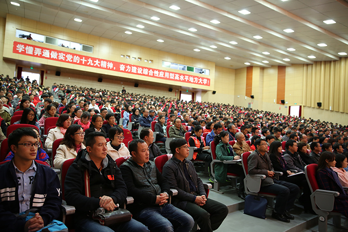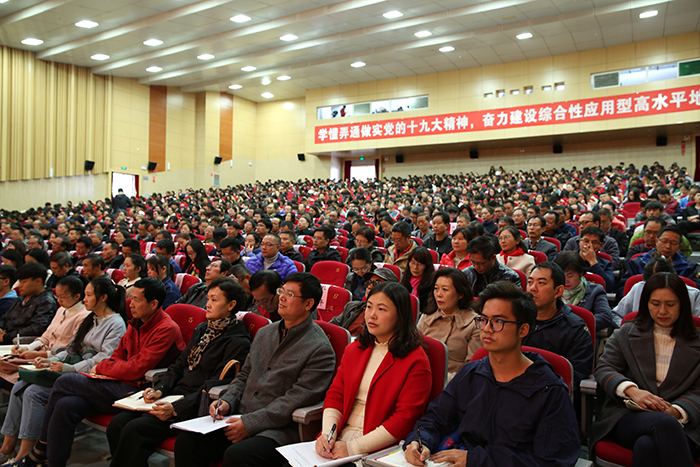 11月3日,beat365在线体育唯一正版召开扩大会议,传达学习党的十九大精神,对全校学习宣传贯彻进一步作出安排。强调全校上下要把党的十九大精神学习好、宣传好、贯彻好,用精神武装头脑、指导实践、推动工作,把广大党员干部、师生员工的思想和行动统一到党的十九大精神上来,以习近平新时代中国特色社会主义思想为指引,奋力建设综合性应用型高水平地方大学。 学校党委书记陈永明主持会议并传达党的十九大精神,就深入学习宣传贯彻党的十九大精神提出明确要求。纪委书记王映平,副校长熊晶、董建华、沈凡,副校级领导孙勇出席会议。 陈永明书记从党的十九大的基本情况、报告的主要精神、中央纪委工作报告的主要内容、党章修改的主要内容、十九届一中全会精神的主要内容五个方面,系统归纳了过去5年取得的历史性成就和发生的历史性变革,深刻阐述了习近平新时代中国特色社会主义思想的时代背景、核心要义、创新观点和重大贡献,阐述了中国特色社会主义进入新时代、我国社会主要矛盾变化等重大论断,对“两步走”“两个阶段”的战略安排,对经济社会发展的重大部署,对坚定不移全面从严治党进行了系统阐释解读。报告主题鲜明,重点突出,数据详实,资料丰富,运用生动鲜活的数据、案例,系统透彻、深入浅出,具有很强的针对性和感染力。 陈永明书记指出,党的十九大是在全面建成小康社会决胜阶段、中国特色社会主义进入新时代的关键时期召开的一次十分重要的大会,是在新的历史起点上开启党和国家事业新征程的一次大会,是一次不忘初心、牢记使命、高举旗帜、团结奋进的大会,在党和国家发展史上具有重大里程碑意义,是迈向中华民族伟大复兴的重要一步。认真学习宣传贯彻党的十九大精神,关系党和国家事业继往开来,关系中国特色社会主义前途命运,关系最广大人民根本利益,也事关学校综合改革发展进程,动员广大党员干部、师生员工的思想和行动统一到党的十九大精神上来,用精神武装头脑、指导实践、推动工作,奋力建设综合性应用型高水平地方大学,培养社会主义合格建设者和可靠接班人具有重大现实意义。 陈永明书记强调,学习宣传贯彻好党的十九大精神,是学校当前和今后一段时期的首要政治任务。学懂、弄通、做实党的十九大精神,最重要的是学习贯彻习近平新时代中国特色社会主义思想,这是党的十九大精神的灵魂,是我们把握党的十九大精神的“纲”,是我们做好一切工作的主线。要抓住这条主线,在全校迅速兴起学习宣传贯彻党的十九大精神的热潮,使党的十九大精神走进支部、深入班级、融入社团,做到人人知晓,把干部、师生力量凝聚到实现党的十九大提出的各项目标任务上来,让习近平新时代中国特色社会主义思想在学校形成生动实践。 陈永明书记对学习宣传贯彻党的十九大精神作出具体安排,强调:一要抓好学习,准确领会精神实质。全校各党总支、直属党支部,全体党员要原原本本学习党的十九大报告和新党章,准确把握报告体现的本质内涵和精神实质,切实在学懂弄通做实上下功夫,切实将思想和行动统一到党的十九大精神上来,用党的创新理论武装头脑、指导实践、推动工作。二要抓住目标定位,落实好报告对教育工作提出的新要求。广大教师要以立德树人为主线,以培养社会主义建设者和接班人为目标,深入学习、全面贯彻党的十九大精神,努力把握教育历史定位,明确教育根本任务,理解教育本质要求,突出教育中国特色,将党的十九大报告中有关教育的精神实质内化于心,外化于行,为把beat365在线体育唯一正版建设成为全国知名、特色鲜明的综合性应用型高水平地方大学不断努力。三要抓好贯彻落实,做到“三个结合”。全校各单位要结合党的十九大对教育工作的重大部署,联系我校“转型发展、内涵提升、重点突破”的思路,把党的十九大精神切实在工作中贯彻下去、体现出来,努力做到“三个结合”。一是要把贯彻落实党的十九大精神与贯彻落实全国、全省高校思想政治工作会议精神结合起来,进一步筑牢高校师生理想信念。二是要把党的十九大精神贯彻融入高校“两学一做”学习教育和一流党建创建中,着力提升高校党委的领导核心作用、各党总支、直属党支部及党支部的战斗堡垒作用和党员的先锋模范作用。三是要用党的十九大精神指导我校全面深化改革工作,以问题、目标、效果为导向,以改革为手段,聚焦转型和内涵,不断推动学校又好又快发展。 会上,熊晶副校长宣读了《中共beat365在线体育唯一正版委员会关于成立“学习贯彻党的十九大精神”beat365在线体育唯一正版宣讲团的决定》,对宣讲工作提出要求:一要提高政治站位,认真备课,精准宣讲;二要牢牢把握“学懂弄通做实“的宣讲要求,突出难点重点;三要走进支部深入班级,实现校园宣讲全覆盖。 陈永明书记等与会校领导为24名“学习贯彻党的十九大精神”beat365在线体育唯一正版宣讲团成员和21名“学习贯彻党的十九大精神”学生宣讲团成员颁发聘书。这标志着“学习贯彻党的十九大精神”beat365在线体育唯一正版宣讲团正式成立并全面开讲。宣讲团成员将根据不同的对象、不同的需求,走进支部、深入班级、融入社团,同党员干部、师生员工开展面对面、互动式的宣讲,扎实推动党的十九大精神走进基层、