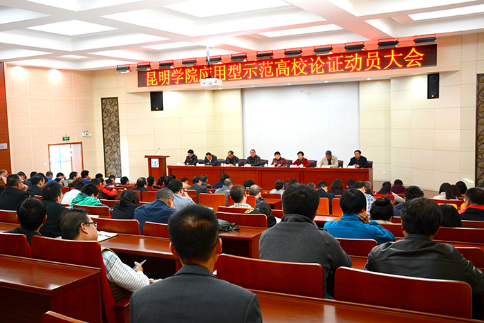 11月17日,我校在办公楼3D报告厅召开云南省应用型人才培养示范院校建设论证动员大会。党委书记陈永明,校长黎素梅,纪委书记王映平,副校长熊晶、董建华、马银海,副校级领导孙勇及中层干部参加了动员大会。 大会由校长黎素梅主持。 党委书记陈永明在会上作讲话。他说,此次云南省应用型人才培养示范院校建设动员大会意义重大,通过此次动员大会,进一步提高各职能部门和各教学院系对应用型人才培养示范建设院校论证的认识和重视。按照应用型人才培养示范院校的建设标准要求,扎实有效做好论证前期各项工作,进一步完善论证方案,迎接专家认证。他强调,应用型人才培养示范建设院校论证是学校目前面临的重要工作,此项工作关系到学校的应用转型是否取得持续建设与发展;学校应用型人才培养示范院校建设的各项准备工作是否按照标准要求,做到细致深入、扎实有效,是否做到整个论证方案完善和路径清晰有特色,这取决于我们对论证前期工作的态度和责任。陈书记指出,接下来学校即将举行应用型人才培养示范院校建设方案的专家论证会议。这次专家来学校,对建设任务和建设方案进行评估认证,关乎学校能否跻身于全省应用型人才培养示范院校之一,乃至于向最后国家级的100所示范院校进军,这个目标能不能实现,关键在于我们的各项工作是否做细、做实、做深、做精,得到专家的认可。这需要我们高度重视。