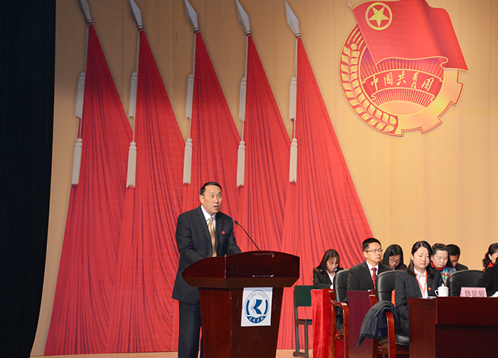 校党委书记陈永明向莅临大会的共青团云南省委领导和兄弟院校的来宾表示热烈的欢迎。陈书记对我校共青团和各级团学组织八年来开展的工作和做出的成绩给予了充分的肯定。他指出,共青团作为党的助手和后备军,要紧密围绕学校党政中心工作,勇于担当、主动作为;要以“凝聚青年、服务大局”为宗旨,积极服务于学校大局,服务青年学生成长成才。共青团在学生思想引领,促进校风学风建设,丰富校园文化生活,提高精神文明建设水平等方面做了大量卓有成效的工作,各项团学工作扎实推进,学术科技、创新创业工作成绩突出,社会实践卓有实效,学生社团蓬勃发展,涌现出一批优秀集体和先进个人,为把我校建设成同类高校领先、特色鲜明的综合性应用型高水平地方大学作出了积极的贡献。