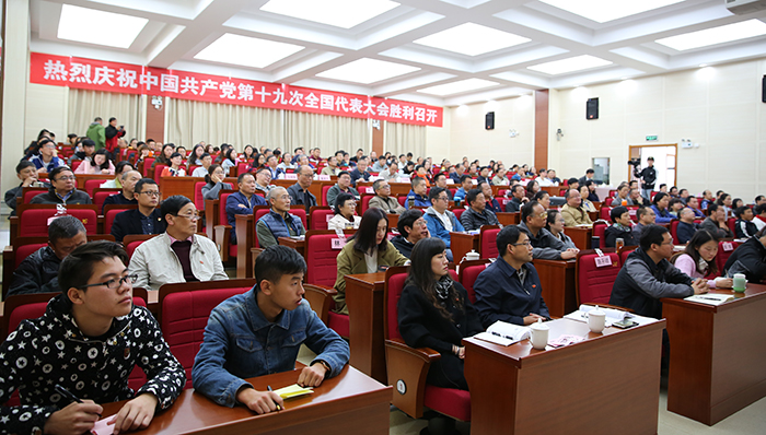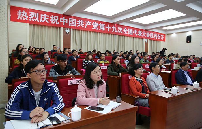 盛世中华奏凯歌,盛会鼓舞人心、报告催人奋进。10月18日上午,举世瞩目的中国共产党第十九次全国代表大会在北京人民大会堂隆重召开,习近平同志代表第十八届中央委员会向大会作了题为《决胜全面建成小康社会夺取新时代中国特色社会主义伟大胜利》的报告。习近平指出,中国共产党第十九次全国代表大会,是在全面建成小康社会决胜阶段、中国特色社会主义进入新时代的关键时期召开的一次十分重要的大会。大会的主题是:不忘初心、牢记使命,高举中国特色社会主义伟大旗帜,决胜全面建成小康社会,夺取新时代中国特色社会主义伟大胜利,为实现中华民族伟大复兴的中国梦不懈奋斗。 学校党委组织全体中层干部和师生员工代表集中收看党的十九大开幕盛况。党委书记陈永明,校长黎素梅,党委副书记张祖武,纪委书记王映平,副校长董建华、马银海、沈凡,副校级领导孙勇等党政领导班子成员与干部、师生员工们一同聆听习近平同志代表十八届中央委员会向大会作的报告。各党总支、直属党支部也结合实际,利用电视、广播、网络等多种途径,采取集中与分散的形式,组织师生收听收看。习近平总书记作的报告引起师生强烈反响。 大家一致认为,习近平同志向大会所作的报告,高举中国特色社会主义伟大旗帜,全面总结了过去五年的伟大成就和历史性变革,系统阐述了构成新时代坚持和发展中国特色社会主义的基本方略,进一步明确了未来一个时期党和国家事业发展的大政方针和行动纲领,科学谋划了到本世纪中叶的战略性发展目标和宏伟蓝图,为实现中华民族伟大复兴指引了前进的方向。报告旗帜、主题鲜明,内涵丰富,高屋建瓴,思想深刻,鼓舞人心,催人奋进。 陈永明书记指出,党的十九大胜利召开是一次具有重大历史意义的会议。大会标志着中华民族伟大复兴的中国梦将开启一个新的具有重大历史意义的新篇章。大会也向世界展示了以习近平同志为核心的党中央高举中国特色社会主义伟大旗帜,全党全国各族人民向着中华民族伟大目标奋勇前进,勇往直前。大会让我们深深地感受到我们国家发生的具有重大意义的历史性变化,也让我们深深地感受到国家取得的伟大成就。这些成就的取得令我们深受鼓舞,也倍感自豪。 陈永明书记强调,beat365在线体育唯一正版作为一所高等院校肩负着为中国特色社会主义培养合格建设者和接班人的重任。学习好贯彻好党的十九大精神,用党的十九大提出的新理论新思想新要求武装广大干部、师生,这将是当前最重要的政治任务。我们作为高校要始终回答好怎么样培养人,培养什么样的人这一重大历史问题。要坚持中国特色社会主义办学方向,坚持立德树人这一根本任务。我们将在党的十九大精神的指引下深化学校教育体制机制改革,推动学校教育、科研和人才培养工作。 “过去五年,党的事业、国家的事业取得的进步和发展,每一个共产党员、每一个中国人都真切感受到巨大的变化,我为国家的日益富强倍感自豪,这一切和党的坚强领导密不可分。”人文学院党总支书记陈嘉教授表示,作为一名高校的党员教师,要牢记习近平总书记的重要讲话精神,牢记使命,把教书育人和为人民服务的宗旨贯穿到具体的工作之中,认真学习、努力工作,不辜负师生的期待和信任,在新的时代争做一名优秀的共产党员。 马克思主义学院形势与政策教研室主任苟园副教授说,看到在过去五年以习近平同志为核心的党中央带领全国人民迎难而上、革故鼎新、砥砺奋进取得的辉煌成就,由衷感到自豪和骄傲。作为一名高校思想政治理论课教师,我将认真学习党的十九大报告,牢记高校教师的使命与责任,围绕立德树人的中心工作,坚持不懈传播马克思主义理论,为学生的一生成长奠定科学的思想基础,为社会主义现代化建设培养合格建设者和可靠接班人;以开拓进取的精神为实现中华民族的伟大复兴贡献自己的力量。 “作为一名高校的普通党员教师,我认为理想信念是共产党人安身立命之本和政治灵魂,所以我们要把立德树人作为使命,把为共产主义教育事业奋斗终身作为自己的职责,为党的教育事业鞠躬尽瘁。”国际交流合作处留学生管理科科长陆向红老师表示,在党的十九大精神指导下,发挥昆明地处辐射南亚、东南亚的地缘优势和学校办学特色的吸引力,进一步做好南亚、东南亚留学生工作,搭建交流桥梁,传播博大精深的中国文化,培养留学生知华、爱华、亲华的情感,为“一带一路”沿线国家的经济文化发展添砖加瓦。 “过去五年我国取得的巨大成就,我作为一名中国人而自豪。”人文学院2015级历史学专业学生邓博文表示,我作为历史学师范类专业的学生,今后在自己的专业领域上不断努力学习钻研,将来在教师岗位上秉承立德树人、以身为范精神,把自己的知识传授给学生,让他们懂得老一辈革命家的艰辛奋斗历程,懂得新中国成立的来之不易以及我国的光辉历史,为实现中华民族伟大复兴的中国梦而不懈奋斗。我会继续严格按照党章的要求履行一名共产党员的职责,不忘初心、牢记使命,继续前进。 “地铁、高铁如期开通,让我切身感受到出行的方便和‘中国速度’。”自动控制与工程管理学院2016级交通运输专业学生赵茜茜自豪地说,昆明创建文明城市,基础设施得到进一步的完善,人民素质不断提高,城市凝聚力和竞争