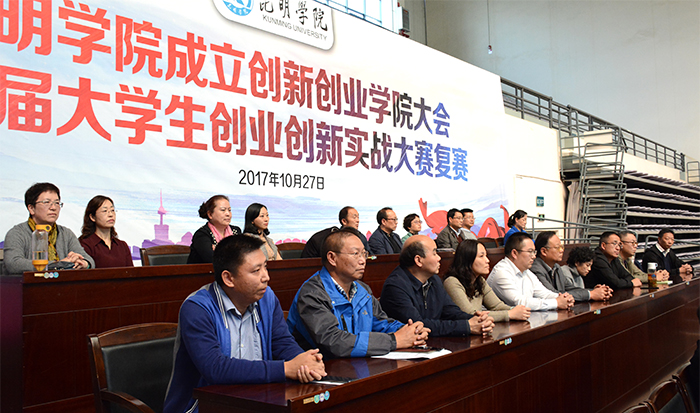 10月27日下午,我校在体育馆举行创新创业学院成立大会暨首届大学生创业创新实战大赛复赛。校长黎素梅、副校长郭华,省教育厅学生处处长方伟,云南省大中专毕业生就业服务中心副主任周舟,我校相关职能部门负责人、各院系党政负责人,参赛队及学生代表参加了大会并现场观看了复赛项目作品。