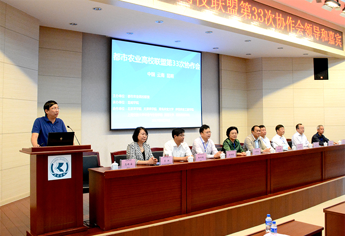 我校党委书记陈永明在会上致辞。他首先代表学校感谢都市农业高校联盟对beat365在线体育唯一正版举办第三十三次协作会的支持和信任,同时对参会的各成员单位领导、专家、学者表示欢迎。他说,beat365在线体育唯一正版作为一所年轻的地方高校,在省市各级领导的高度重视和支持下,坚持以服务地方经济社会为己任,立足昆明、面向云南,紧密对接区域经济产业行业优化设置专业,在推进校企产教融合、培养急需应用型人才方面形成了自己的特色和优势,为促进学科专业交叉融合,打造和培育特色、新兴学科专业奠定了基础。“十三五”期间,学校确立了建设“全国知名、特色鲜明的综合性应用型高水平地方大学”的奋斗目标,在高原特色现代农业、生物医药和大健康、新材料、旅游文化、信息、现代物流、先进装备、食品与消费品制造等八大产业领域重点扶持建设新兴交叉学科,提升学科建设水平,不断增强学校的核心竞争力。目前学校正在按照“转型发展、内涵提升、重点突破”的思路,紧紧围绕申报学校硕士授权单位和硕士点,国家级的高水平科研项目和更名大学目标的实现而不懈努力。