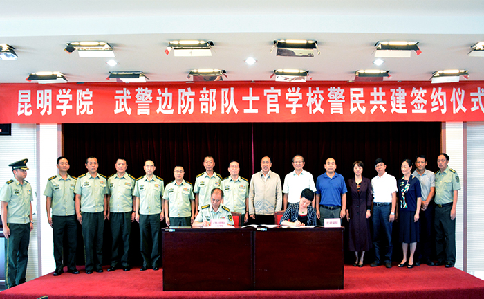 会上,校长黎素梅代表学校与武警边防部队士官学校政委金尚文大校签署两校警民共建合作协议。