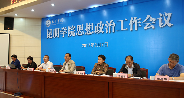 9月7日,我校召开思想政治工作会议,进一步学习贯彻全国、全省思想政治工作会议精神,总结学校近年思想政治工作,安排部署下一阶段主要工作任务。会议强调,要深入学习贯彻习近平总书记在全国高校思想政治工作会议上的重要讲话精神和省委书记陈豪同志在全省高校思想政治工作会议上的讲话精神,强化思想引领和责任担当,牢牢把握社会主义办学方向,突出立德树人的根本任务,创新思政工作,全面提升思政工作水平,为地方经济社会发展培养更多优秀人才。 学校党委书记陈永明出席大会并讲话,校长黎素梅主持大会。党委副书记张祖武,纪委书记王映平,副校长熊晶、郭华、董建华、马银海等党政领导出席会议。