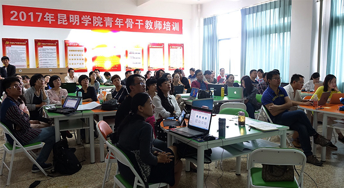 7月7—8日,我校在惟行楼1209举行 “‘互联网+’背景下混合式教学设计与实现”的青年骨干教师培训。我校2014年、2015年和2016年选拔的全体青年骨干教师参加培训,本次培训工作由教师教学发展中心承担,上海交通大学慕课研究院的余建波培训团队担任培训师。