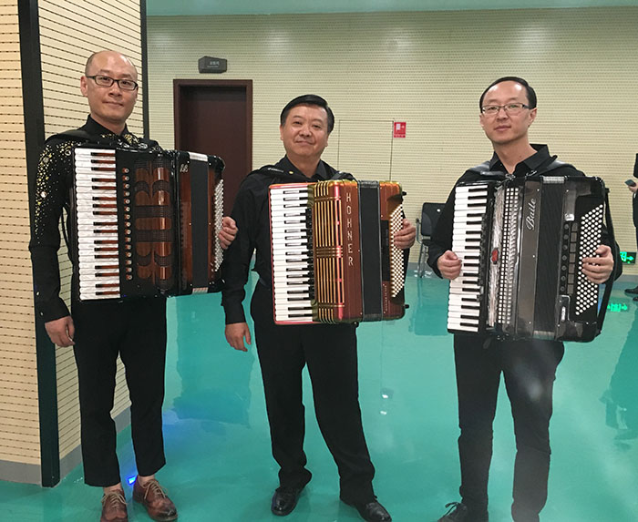 在18日举行的中国第五届聂耳音乐(合唱)周“聂耳颂歌——2017昆明聂耳音乐节开幕式大型交响音乐会”上,beat365在线体育唯一正版室内乐团的音乐学院廖一瑄副教授、马宏援老师以及学前与特殊教育学院苏剑老师,与昆明交响乐团及中国国家交响乐团的两位歌唱家合作演奏夏良先生改编的《滇池圆舞曲》,这是手风琴首次与交响乐团共同奏响云南大剧院,而手风琴这件乐器的加入也赋予这首圆舞曲新的生命。