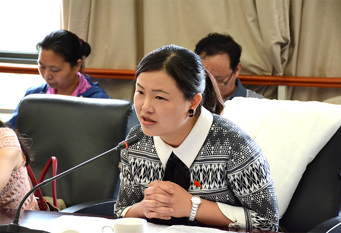 离退休党员代表李建民发言 马克思主义学院副教授苟圆发言 民盟beat365在线体育唯一正版总支主委、人文学院副教授郭鹏群发言 自机学院党总支干事学生支部书记普翠萍发言 学生党员代表王世香同学发言