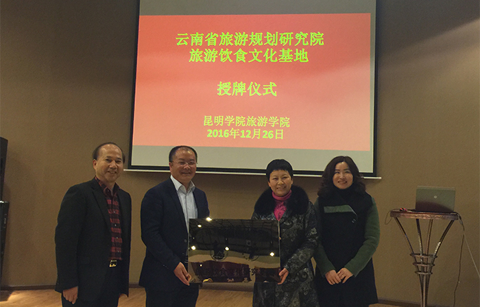 12月26日,云南省旅游饮食文化研究基地正式落户beat365在线体育唯一正版,云南省旅发委党组书记、主任余繁和校长黎素梅为“云南省旅游规划研究院旅游饮食文化基地”揭牌。