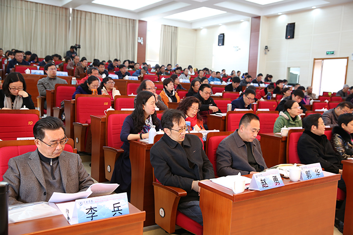 黎素梅校长讲话强调,深入学习贯彻全国思想政治工作会议精神,推进马克思主义理论学科体系建设,加强和改进高校思想政治教育,提升立德树人水平和质量,关键在队伍建设,从事哲学社会科学工作者都应该立时代之潮头、通古今之变化、发思想之先声,积极为党和人民述学立论、建言献策,担负起历史赋予的光荣使命。作为高校思政教师首先要坚定不移地做到对马克思主义学说真信、真学、真懂和真用;其二,高校要整合资源、凝聚力量,形成团队,培养大批年青的马克思主义学科带头人、教育家;其三,在教学中思政教师要在亲合力、说服力上下功夫,不断提高教学能力和水平,进一步加强改革和创新的力度,突出教学规范性、生动性。