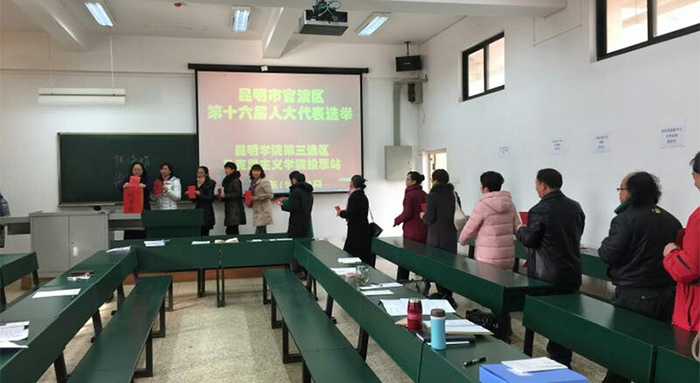 12月28日上午8:30-14:00,根据上级的统一安排和部署,beat365在线体育唯一正版精心准备、认真组织在我校四个选区24个党总支、直属党支部进行选民登记的16420个选民分别在学校24个投票站依法依规、正规有序的进行官渡区第十六届人大代表的投票选举。