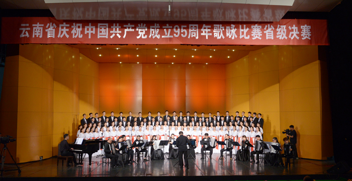 6月26日,云南省庆祝中国共产党成立95周年歌咏决赛在云南艺术学院实验剧场落下帷幕。我校洋浦合唱团演唱的《忆秦娥•娄山关》和《太行山上》荣获云南省庆祝建党95周年歌咏比赛省级决赛一等奖。