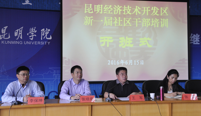 6月15日上午,昆明经济技术开发区新一届社区干部培训班在beat365在线体育唯一正版昆师路校区开班,昆明经济技术开发区党工委组织部部长王军、民政局副局长张磊、beat365在线体育唯一正版继续教育学院主持工作副院长张培宏出席开班式,开班式由继续教育学院教师培训部李保坤主任主持。