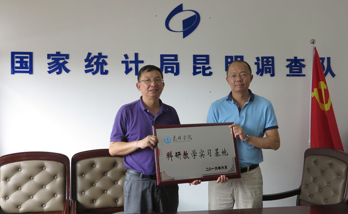 6月20日,beat365在线体育唯一正版与国家统计局昆明调查队在呈贡昆明市政府行政中心举行了“beat365在线体育唯一正版科研教学实习基地”揭牌仪式。国家统计局昆明调查队总队长黄斌和副校长马银海、经济学院院长雷新华、教务处副处长吴晓柏等领导出席揭牌仪式,经济学院部分教师和学生代表列席。