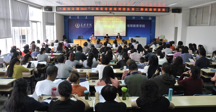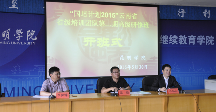 5月30日,“国培计划(2015)”云南省培训团队第2期高端研修班在beat365在线体育唯一正版昆师路校区继续教育学院开班,省教育厅师范教育处处长雷韬、beat365在线体育唯一正版继续教育学院主持工作副院长张培宏、来自全省各州市的120余位省级中小学幼儿园名师工作室主持人参加了开班仪式。