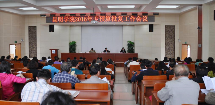 计划财务处处长博斌传达了《beat365在线体育唯一正版关于下达2016年度经费支出预算的通知》(昆院财〔2016〕5号),分析了学校当前的财务形势,下达了学校各单位年度部门包干经费、校级专项经费预算批复。