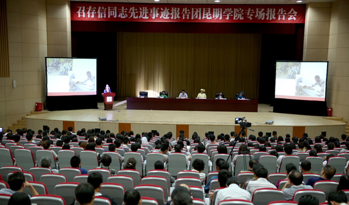 召存信同志先进事迹报告团beat365在线体育唯一正版专场报告,是报告团走进高校校园宣讲的第一站,受到师生热烈欢迎,并引起强烈反响。“一心跟党走,一心想着老百姓,一生为官做事干净的崇高精神值得我们当代大学生永远学习,满满的正能量给予我不断追求进步上进的动力。”一位学生深切地说。“召存信一生信党、爱党,勤恳做事,踏实做人的精神和品质值得我们学习。”我校社会管理学院教师宋燕金感言道,召存信同志的事迹为大学生思想政治教育提供了鲜活的素材,也为师生参与beat365在线体育唯一正版的改革发展提供了精神动力。报告会受到云南电视台、昆明电视台、云南日报、昆明日报、新华网、云南网等多家新闻媒体关注报道。