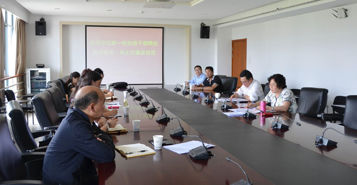 学校新一轮的处级干部聘任工作第一阶段已经完成,新聘任交流的处级干部均已到新岗位开展工作。根据《党政领导干部选拔任用工作条例》和党风廉政建设工作要求,学校党委副书记、纪委书记李媛芬对新一轮聘任到岗的处级干部开展干部任用集体廉政谈话。廉政谈话会议由纪委副书记、监察处长陈开祥主持。