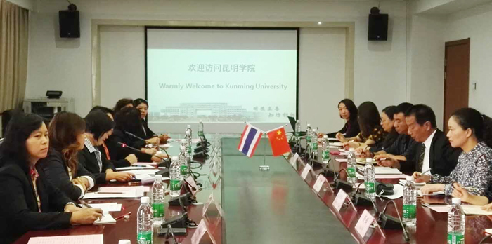 双方互相介绍了与会人员后,李翔提出师生交流合作和泰语专业的合作两个领域项目与对方进行了深入商谈。师生互换交流项目包括已经开展过的师生短期交流项目、学术合作交流项目和艺术类教师的互派交流项目;泰语专业的合作是组织我校外国语学院去年开办的泰语专业学生今后到泰国交流学习、实习和双方共建泰文资料室和选派泰语外教等项目。