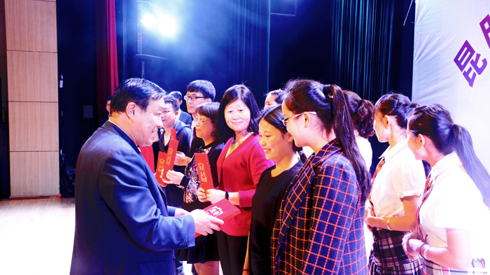 5月25日晚,我校第八届大学生心理健康教育宣传月闭幕式在学生会堂顺利举行,学校党委副书记孙勇、副校长郭华出席闭幕式,并为活动中各项比赛的获奖团体和个人颁奖。相关部门领导和各院系书记、副书记,来自18各院系的1000余名学生参加闭幕式。