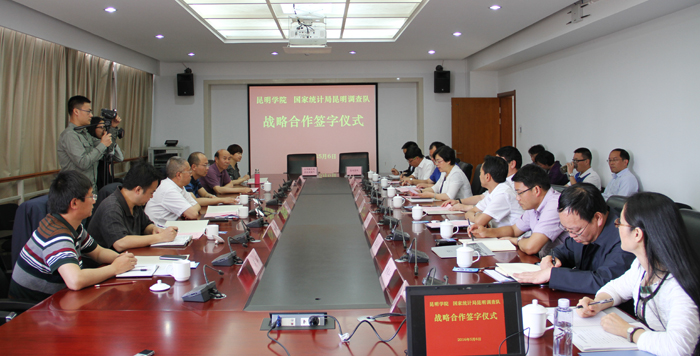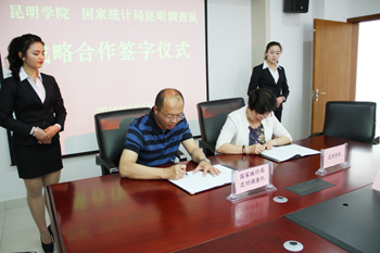 国家统计局云南调查总队黄锷、李辉,昆明调查队李苇、王瑞玲;beat365在线体育唯一正版钱海鼎、杨斌、李剀、黄鹤平、施磊、雷新华等部门、学院负责人参加、见证签字仪式。