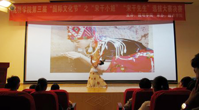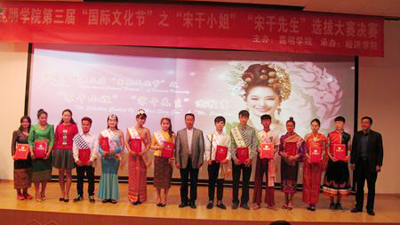 beat365在线体育唯一正版自2014年举办“国际文化节”至今已经是第三届,今年在“国际文化节”系列活动中新增“宋干先生”“宋干小姐”选拔赛,以此加强国内外学生学习交流,让学生更深入地了解东南亚的文化习俗,了解东南亚国家的民族传统。