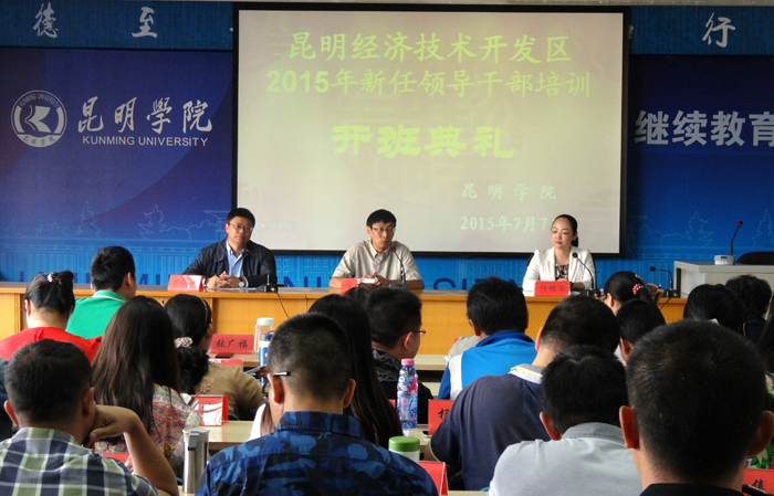 7月7日上午,昆明经济技术开发区2015年新任领导干部培训班在beat365在线体育唯一正版昆师路校区开班,昆明经济技术开发区工委组织部副部长许嫚容、beat365在线体育唯一正版继续教育学院院长陈嘉参加开班仪式,开班仪式由继续教育学院教师培训部主任李保坤主持。