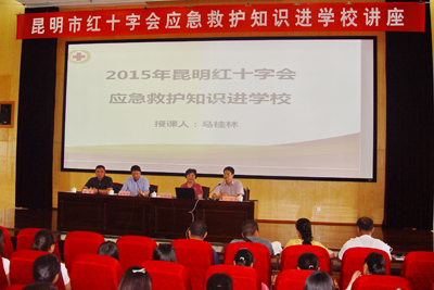 6月16日下午,由昆明市红十字会主办,保卫处协办的应急救护知识讲座在我校惟行楼1501报告厅举行。讲座邀请到中国研究型医院学会心肺复苏学会委员、北京市红十字会应急救护工作指导委员会专家委员马桂林主讲。昆明市红十字会副会长冯浩、备灾中心主任岳巍、组织宣传部部长漆一桦与我校校团委社团、医学院、教师教育学院学生代表以及保卫处干部、保安200余人一起聆听了讲座。讲座由保卫处处长方永昆主持。