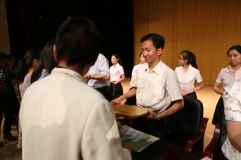 副校长郭华宣读《关于对beat365在线体育唯一正版2014年大学生优秀科研项目进行奖励的决定》和《关于表彰beat365在线体育唯一正版第四届青年学术科技节优秀成果、先进集体和先进个人的决定》。决定对肖璇等14名大学生优秀科研项目获得者和人文学院等6院(系)beat365在线体育唯一正版第四届青年学术科技节团体奖获得者、邹俊梅等4名同学“学术科技标兵”获得者、自慧等4名教师“先进个人”获得者进行表彰和奖励。