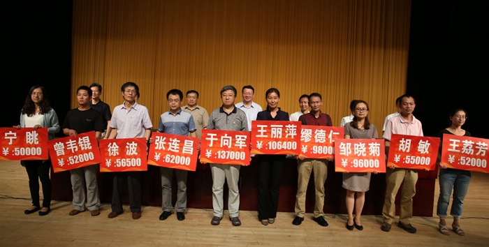 会上,学校党委副书记孙勇宣读《关于对beat365在线体育唯一正版2014年科研成果获奖教师进行奖励的决定》。对2014年科研工作中取得优异成绩的于向军等182名教师进行表彰奖励,共核发奖金190余万元。