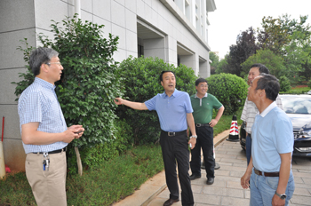 在董建华陪同下,刘晓江一行参观了解了学校种植的云南茶花品种等情况,对我校绿化建设中“立足当地,突出特色”的做法表示赞赏。随后,全体人员乘车参观校园,走进教学楼群,实地考察交流。董建华指出,学校党政高度重视绿化建设工作,努力发挥好自身学科、人才优势,把“校园建美”作为学校建设发展的指导思想,打造学校形象新名片,紧密结合创建全国文明单位等活动,不断创新思路,“把校园当家园建设”理念深入人心,效果明显。