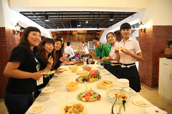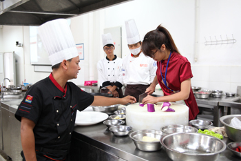 在全天的活动中,双方师生共同参观了beat365在线体育唯一正版滇池流域生态文化博物馆;步行参观了美丽校园;重点考察了旅游学院烹饪实训中心,欣赏了烹饪专业学生的雕刻技术,观摩了滇菜烹饪课程,参与制作并品尝了云南特色凉米线;在酒水实验室体验了普洱茶的芬芳及冲泡互动,在咖啡与鸡尾酒调制过程中双方学生获得了知识的互补和提升。丰富多彩的安排和体验给来宾们留下了深刻的印象,活动在相互交换礼物、合影留恋、两岸师生依依不舍中圆满落下帷幕。