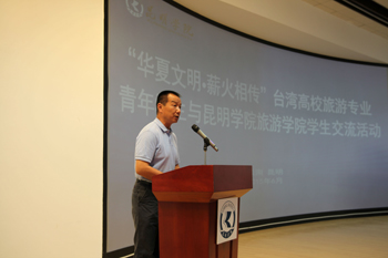 6月1日,在海峡两岸旅游交流协会的组织下,中华观光管理学会理事长李铭辉博士率领台湾醒吾科大、开南大学、澎湖科大、铭传大学、德明科大、台北大学、中华大学、淡江大学、中华科大、元培科大、致理学院等11所大学的48名学生及部分教师来beat365在线体育唯一正版开展以“华夏文明,薪火相传”为主题的学生游学交流活动。国家旅游局、云南省旅游发展委员会两位领导、beat365在线体育唯一正版国际交流合作处、旅游学院党政领导班子和部分师生参加欢迎仪式和交流活动。