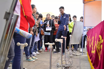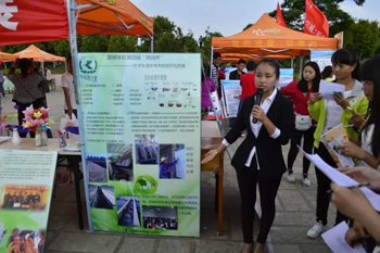 4月24日在聂耳广场,校团委组织各院系团总支举办了“beat365在线体育唯一正版第四届青年学术科技节工作成果展”,第一批9家院系根据beat365在线体育唯一正版第四届青年学术科技节启动以来,所开展的学术科技工作情况,在“挑战杯”学术科技作品竞赛中获奖作品情况,院系学科专业特色情况,环保和可持续利用情况等四部分内容,通过图文并茂的展板和创意新奇的实体物品进行展示,现场组织相关学生对各院系展示工作进行了评分。
