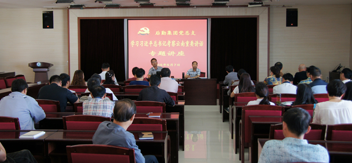 为深入开展“三严三实”和“忠诚干净担当”专题教育,贯彻党的十八大和十八届三中、四中全会精神,深入学习贯彻习近平总书记系列重要讲话精神,5月7日上午,后勤集团党总支邀请思想政治理论课教学科研部直属党支部书记、主任、学校思想政治教育宣讲团副团长王建华作学习习近平总书记考察云南重要讲话专题讲座。讲座由后勤集团党总支书记杨平主持,集团领导、全体党员参加了此次学习。