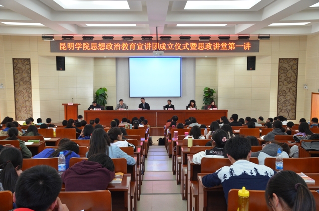 成立仪式由学校党委副书记孙勇主持。首先宣读了《关于成立beat365在线体育唯一正版思想政治教育宣讲团的通知》。beat365在线体育唯一正版思想政治教育宣讲团团长由孙勇兼任,副团长由董学荣、王建华、何杰、王荔兼任,宣讲团成员由杨璐、王宁、杨岚、王德斌、杨光明、马宁、苟园、顾波、吕萍、金鑫、肖磊、蒋怡、缪文武、李杉、耿国平、谭蔚沁、万志红、澜 清、王新红、罗维萍、白蕊、廖俊、曾涌、宋娜等27位在理论学习、研究、宣讲和大学生思想教育、心理健康教育等方面具有一定专长的干部、专家、学者兼任。每届任期三年,首届宣讲团任期从2015年到2018年。根据工作需要,学校将适时调整补充新成员。宣讲团办公室设在学校党委宣传部,学校党群机关各部门、各党总支、直属党支部为成员单位。宣讲团的主要职责是学习、研究、宣讲中国特色社会主义理论体系、党的路线方针政策、大学生思想政治教育和心理健康教育等。