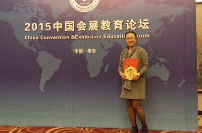 论坛特邀行业专家、教育专家、会展领军人物一道共聚泰安,谋会展之略,全面分析在新的经济形势下,会展发展与人才定位培养的新思路和新手段,缓解高校人才输出与市场人才需求脱节的结构性矛盾。教育部高等学校旅游管理类专业教学指导会委员马勇教授、张河清教授、北京第二外国语学院经贸与会展学院院长刘大可教授、上海对外经贸大学蓝星教授、台湾方圆会展管理有限公司执行长柯树人先生等海内外会展教育的知名专家学者做了精彩的演讲。在会展院校院长联席会议上吴跃辉就我校旅游学院多年来从事会展管理教育作出的成绩和面临的困惑做了大会发言,得到与会各位会展专家的一致好评,我校刘红老师凭借其在会展管理教育中孜孜不倦地耕耘荣获了2015中国会展教育论坛优秀人物奖。