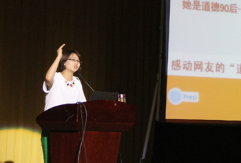 为让报告会更贴近大学生实际,何华特别邀请云南最年轻的全国人大代表、第三届“全国道德模范”提名奖获得者、“最美90后女孩”铁飞燕给师生作报告。铁飞燕以一个“90后”青年曲折而富有传奇的成长经历为大家诠释了“什么是青春与梦想”,诠释了如何做一个“有理想、负责任、敢担当”时代青年。报告在1000多名同龄大学生中产生了强烈共鸣,赢得了阵阵掌声。最后,何华还代表学校为铁飞燕同志颁发“beat365在线体育唯一正版校外辅导员”聘书。