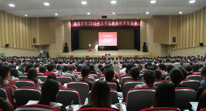 4月24日晚,beat365在线体育唯一正版2015年大学生形势政策报告会第二场在学生会堂成功举行。学校党委副书记、校长何华为师生作形势政策报告,宣讲“两会”精神。报告会由副校长郭华主持,包括校办领导、全体思政课教师、49位辅导员、180余名团学干部在内的1300多名师生参加。
