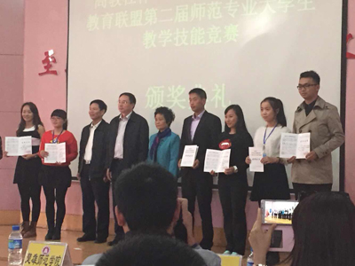 11月27日至29日,“高教社杯”云南省高等学校教师教育联盟主办的第二届师范专业大学生教学技能竞赛总决赛在玉溪举行。我校音乐学院经过认真选拔,确定了音乐学专业2011级2班的李抗同学代表学校参加总决赛。音乐学院教师教育教研室主任朱静老师负责技术指导与培训,鲁林老师应邀担任评委。