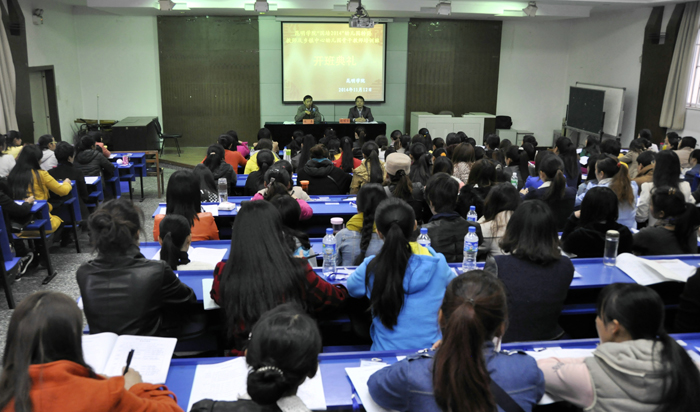 11月12日,“国培计划(2014)”云南省农村幼儿园转岗教师培训班和乡镇中心幼儿园骨干教师培训班在我校昆师路校区继续教育学院开班。来自昭通、红河、曲靖、德宏及昆明5州市的50名幼儿园转岗教师,以及来自保山、大理、德宏、迪庆、临沧、昭通、昆明7州市的150名乡镇中心幼儿园骨干教师,将在此分别进行为期15天和20天的集中培训。我校继续教育学院院长陈嘉、副院长张培宏参加开班典礼并作动员讲话,开班仪式由张培宏主持。