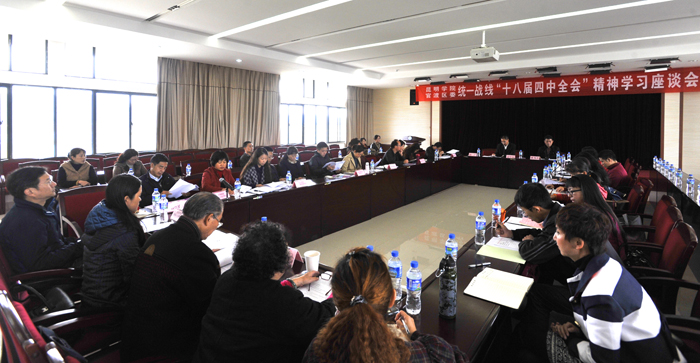 11月12日上午,beat365在线体育唯一正版和官渡区委统战以校地合作方式联合召开统一战线传达重要指示精神和学习十八届四中全会精神学习座谈会。此次会议的召开,是beat365在线体育唯一正版党委统战部和中共官渡区委统战部为了在广大统战成员当中及时传达习近平总书记对云南工作重要指示精神和省委常委扩大会议精神以及全省统一战线贯彻落实重要指示和会议精神的意见,认真学习贯彻党的十八届四中全会精神,积极搭建民主党派学习研讨交流的平台,让各民主党派更好地参政议政、建言献策,扎实推进学校和官渡区统一战线工作。