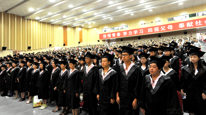 6月27日,我校2014届学生毕业典礼暨学位授予仪式在学生会堂隆重举行。全体校领导及机关处室负责人、各院系党政领导、辅导员和各院系毕业生代表1300多人参加了典礼。典礼由孙勇副书记主持。