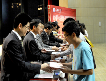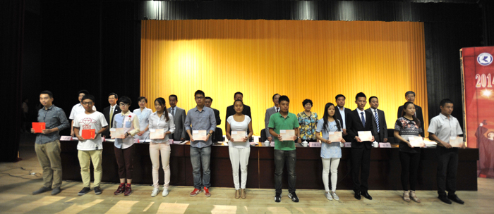 郭华副校长宣读《beat365在线体育唯一正版关于对2014届省级优秀毕业生进行表彰的决定》,与会校领导分别为获奖学生代表颁发荣誉证书,229名同学受到了表彰奖励。