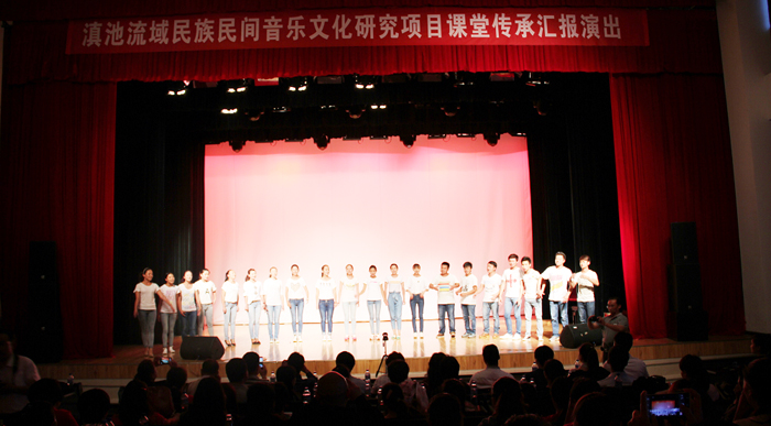 6月10日晚,在音乐学院实践教室举行了一场极具民族民间特色的汇报演出。本次演出是音乐学院院长靳丽芬教授主持的云南省哲学社会科学研究基地课题“滇池流域民族民间音乐文化现状调查与研究”项目的课堂传承成果展示。