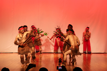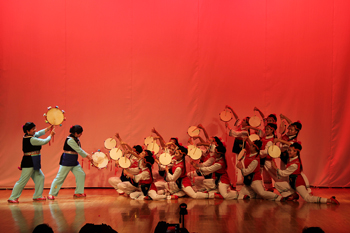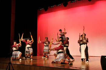 从2013年开始,在课题主持人靳丽芬教授的带领下,课题组16位成员深入滇池流域各区县,对民族民间音乐舞蹈等文化艺术现状作了坚实的田野工作。同时,课题组注重将原生态民族民间音乐舞蹈引入学院专业教学当中,目的是使区域性民族民间艺术在高校教学平台上实现活态传承。音乐学院郭海波副教授演唱的云南花灯代表作《耍山调》和音乐学院学生表演的《彝族酒歌》、同学们与民族民间艺人合作表演的舞蹈《扁鼓声声》更较好地展示了这一拓展性的艺术传承理念,成为本场晚会的亮点。