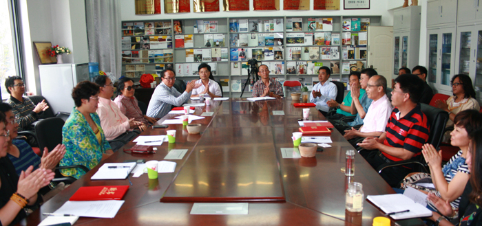 6月16日,深圳大学研究生院院长汪永成教授、深圳大学艺术设计学院院长吴洪教授一行来到我校,并就与我校美术与艺术设计学院在专业建设、学科发展、硕士生联合培养等问题进行了广泛深入的交流磋商。校长蒋永文、副校长熊晶、科研处处长王定康、美术与艺术设计学院党政领导和师生代表参加了会议。