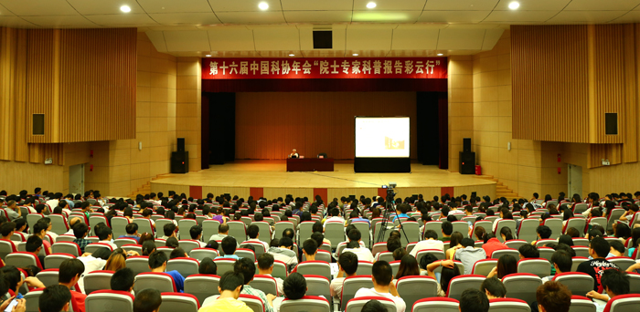 5月25日上午,第十六届中国科协年会“院士专家科普报告彩云行”学术报告会在我校学生会堂举行。此次报告邀请中国著名导弹火箭专家龙乐豪院士主讲“我和共和国火箭事业”这一主题。校长蒋永文、副校长郭华等学校领导出席报告会,部分中层干部及自动控制与机械工程学院、化学科学与技术系师生1300多人参加听报告。本次报告会由副校长郭华主持。